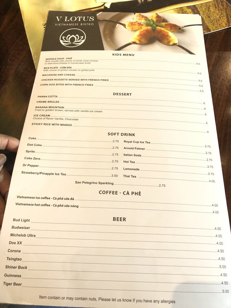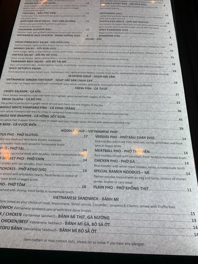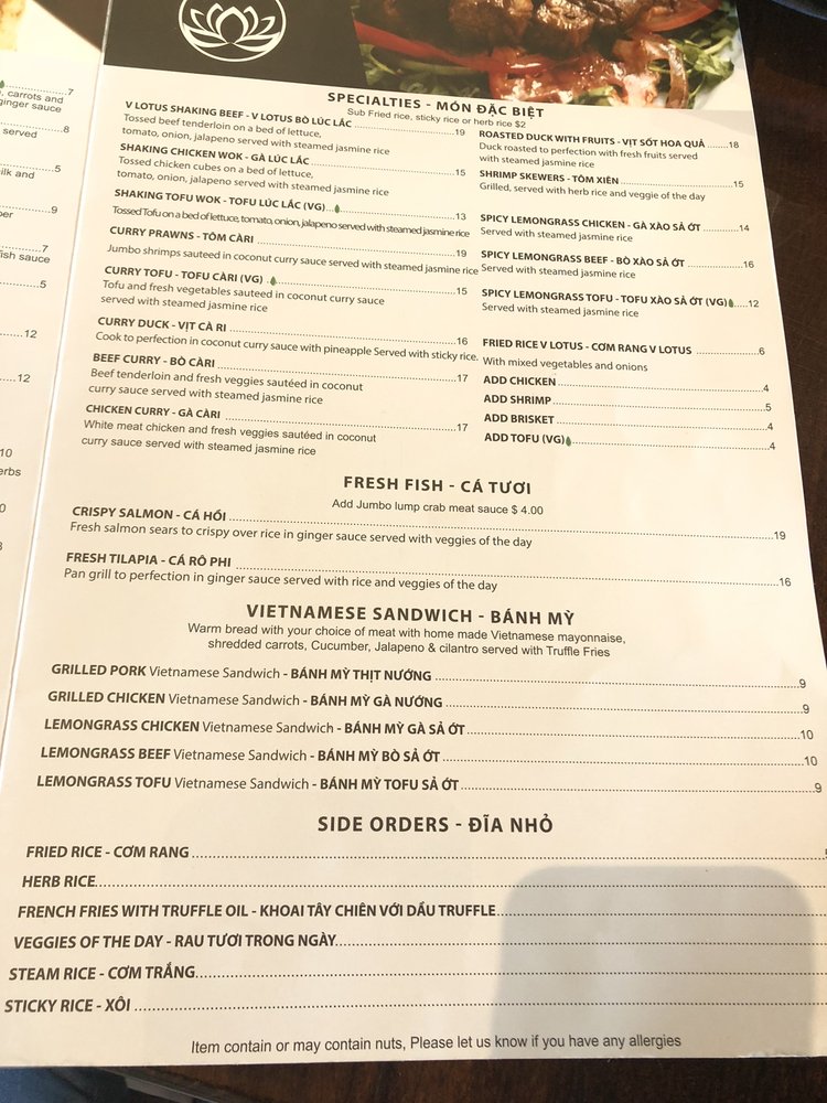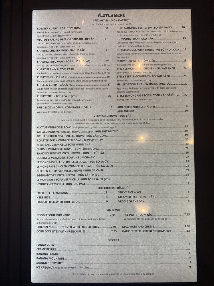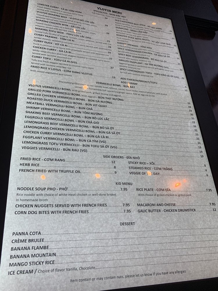 V Lotus is a Vietnamese restaurant that offers a sophisticated dining experience with a range of vegan and vegetarian options. Located in Sugar Land, TX, it features a serene atmosphere with impeccable service. The menu includes delectable dishes like the V Lotus Spring Rolls and the flavorful Pho soup. Customers praise the fresh ingredients and elegant presentation of the dishes. Reviews highlight the attentive staff, upscale ambiance, and unique dessert options like the bay leaf panna cotta and Thai mango sticky rice. Overall, V Lotus provides a modern twist on traditional Vietnamese cuisine, making it a must-visit restaurant for those seeking a high-quality dining experience.